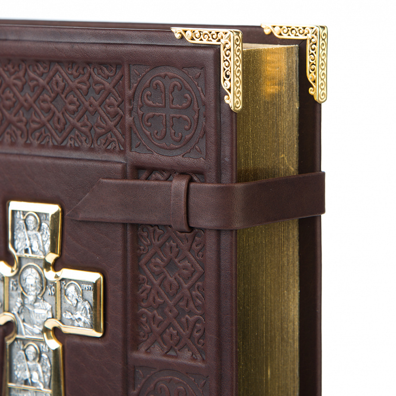 Переплет книги изготовлен вручную из телячьей кожи натурального дубления. Обрамление: серебро 925° — средний вес 106 г.
