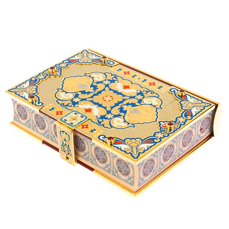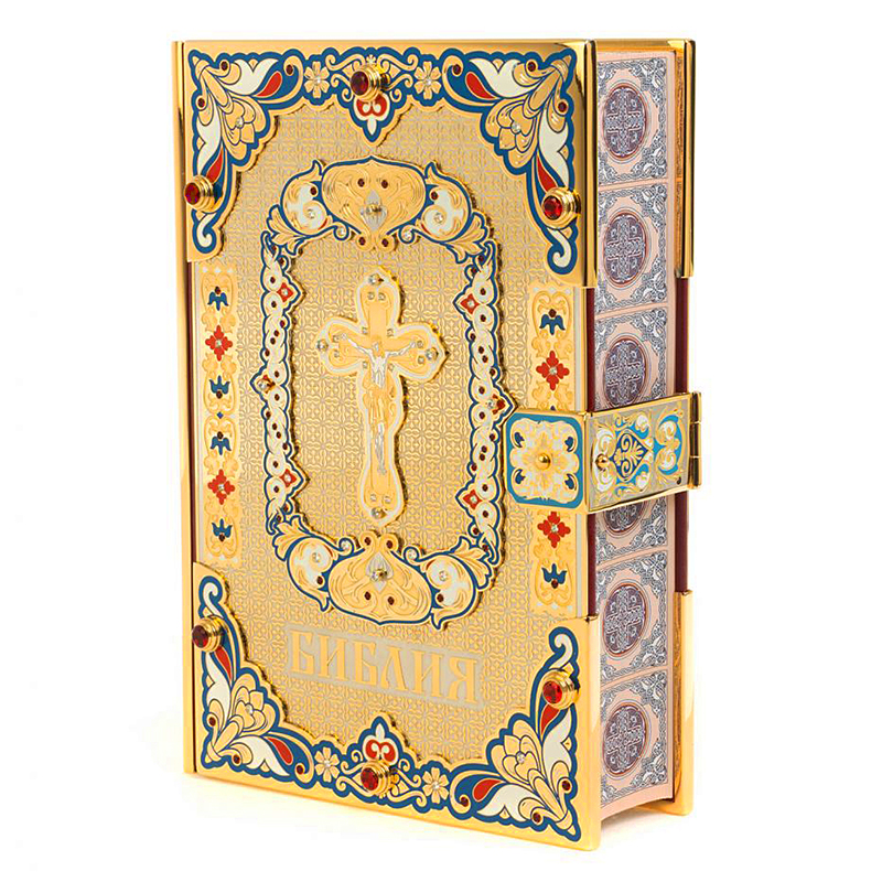 Подарочная книга "Библия", украшенная мастерами Златоуста, представляет собой великолепный экземпляр, который сочетает в себе духовное содержание и высокое искусство.