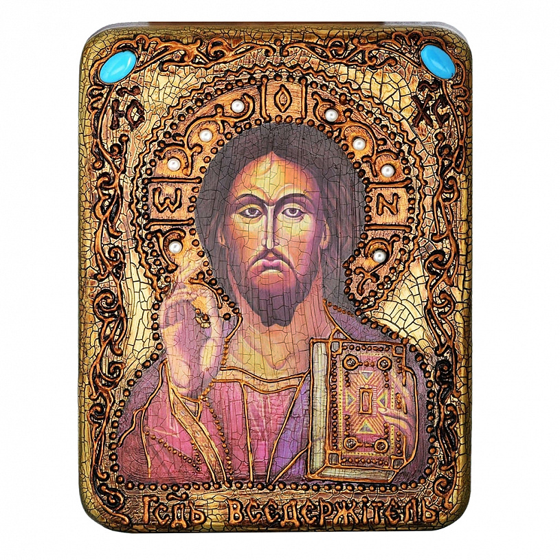 Подарочная икона "Господь Вседержитель" на мореном дубе.