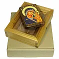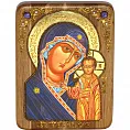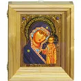 Икона "Казанская икона Божией Матери" на мореном дубе с нимбом из сусального золота в березовом киоте