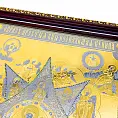 Изделие выполнено в технике Златоустовской гравюры на металле. Токарные работы, рисовка кистью, гравировка иглой по лаку, травление, гравировка резцом, полировка, никелирование, золочение.
