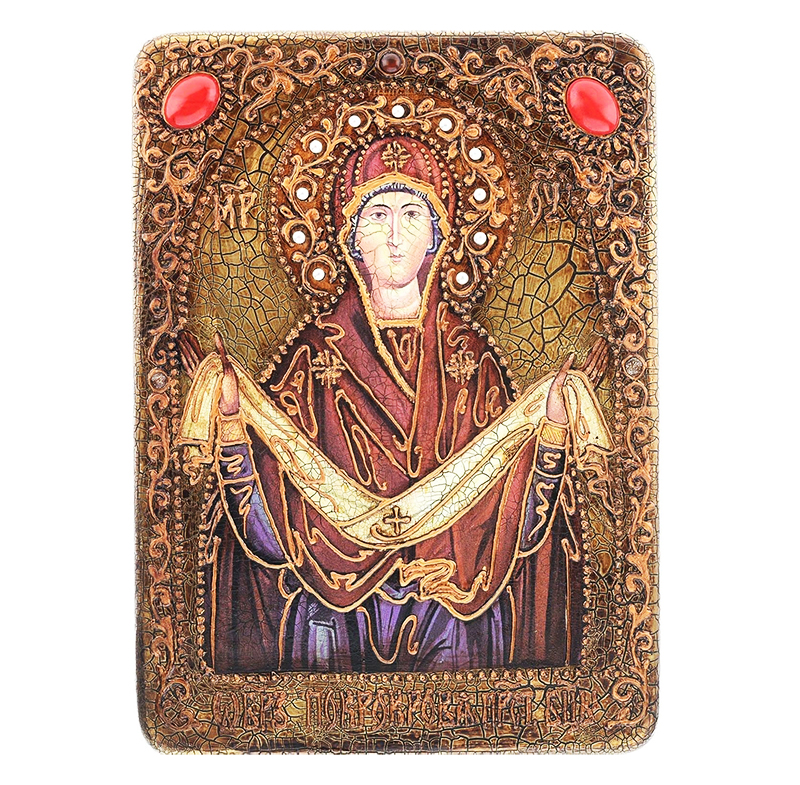 Икона "Образ Божией Матери "Покров" на мореном дубе