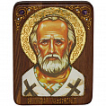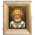 Икона "Святитель Николай чудотворец" на мореном дубе с нимбом из сусального золота в березовом киоте