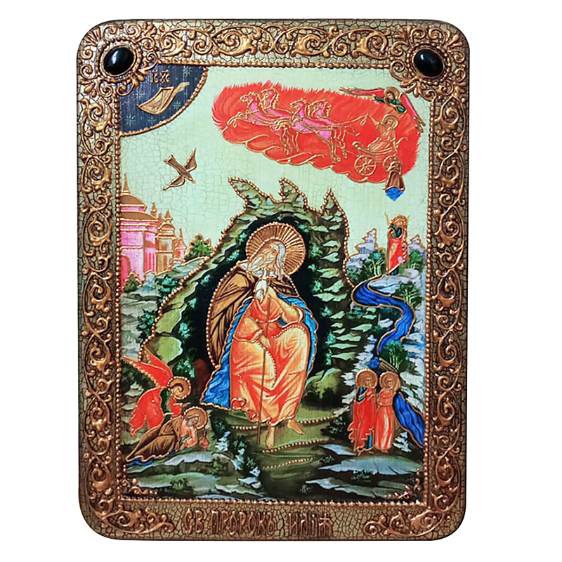 Подарочная икона "Пророк Илия Фесфитянин" на мореном дубе