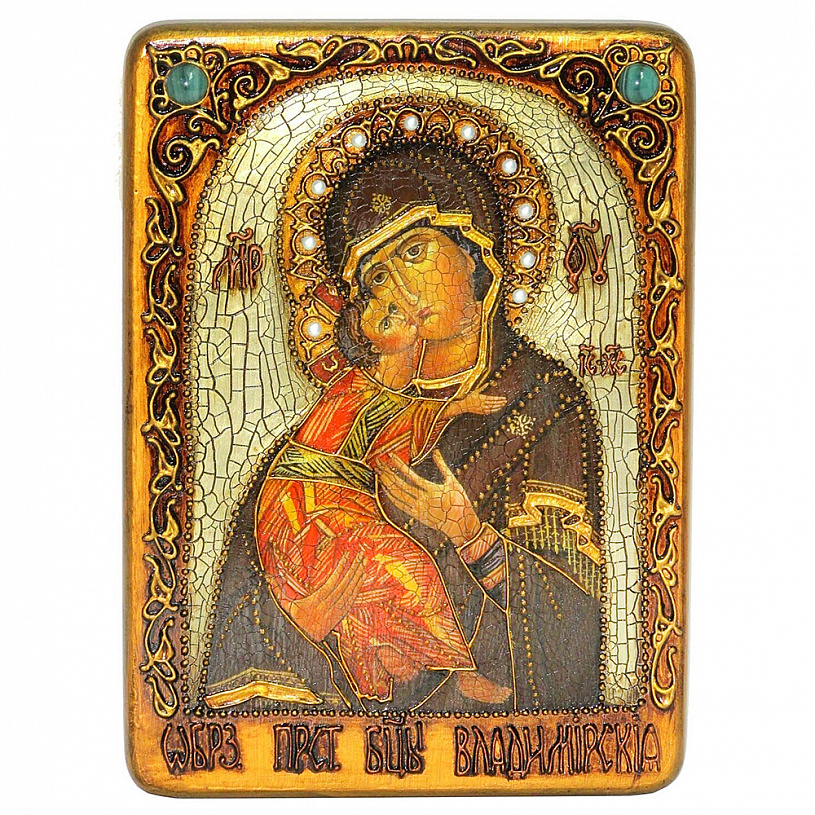 Подарочная икона "Владимирская икона Божией Матери" на мореном дубе