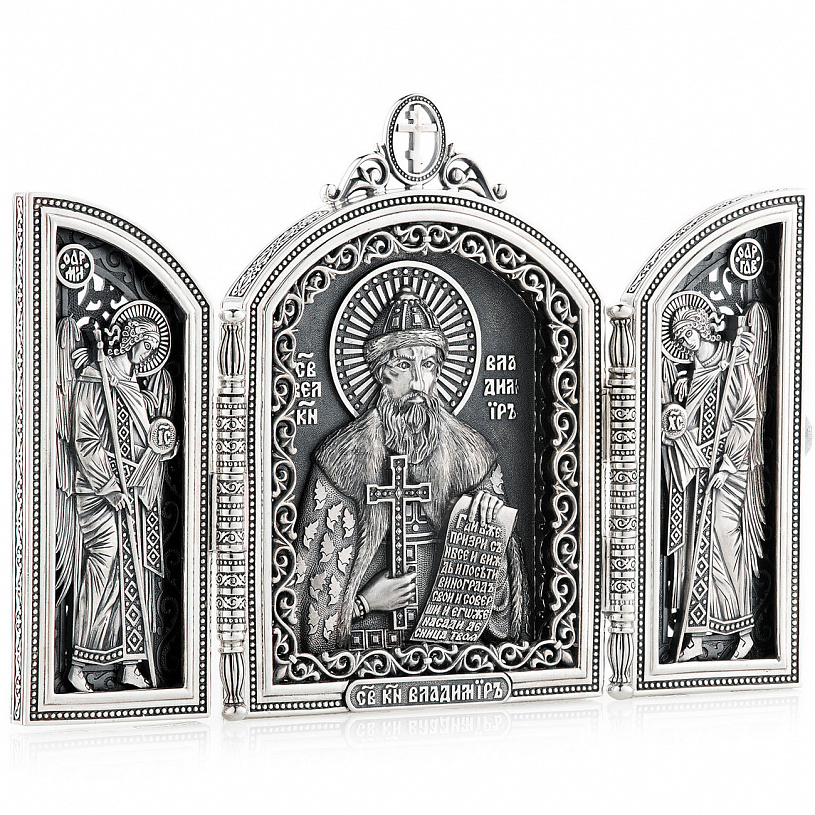 Великий князь Владимир в 988 г. привел Русь к христианской вере через ритуал Крещения. Поэтому образ с его ликом высоко чтится на территории России. На полотнах равноапостольный князь чаще изображен с крестом, похожим на тот, что держали первые апостолы. Этот атрибут свидетельствует об укоренении в Отечестве Православия, ставшего стержнем русского народа. Верующие просят у чудотворного образа о заступничестве, о примирении во время ссор или войн, а также об избавлении от тяжелых недугов.