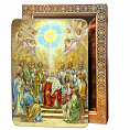Живописная икона Сошествие Святого Духа на кипарисе в березовом киоте
