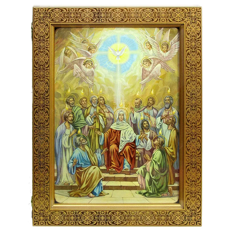 Живописная икона Сошествие Святого Духа на кипарисе в березовом киоте