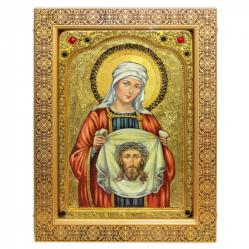 Живописная икона Святая Праведная Вероника Кровоточивая на кипарисе в березовом киоте