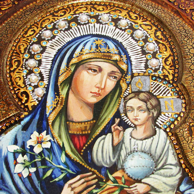Живописная икона Божией Матери Неувядаемый Цвет на кипарисе