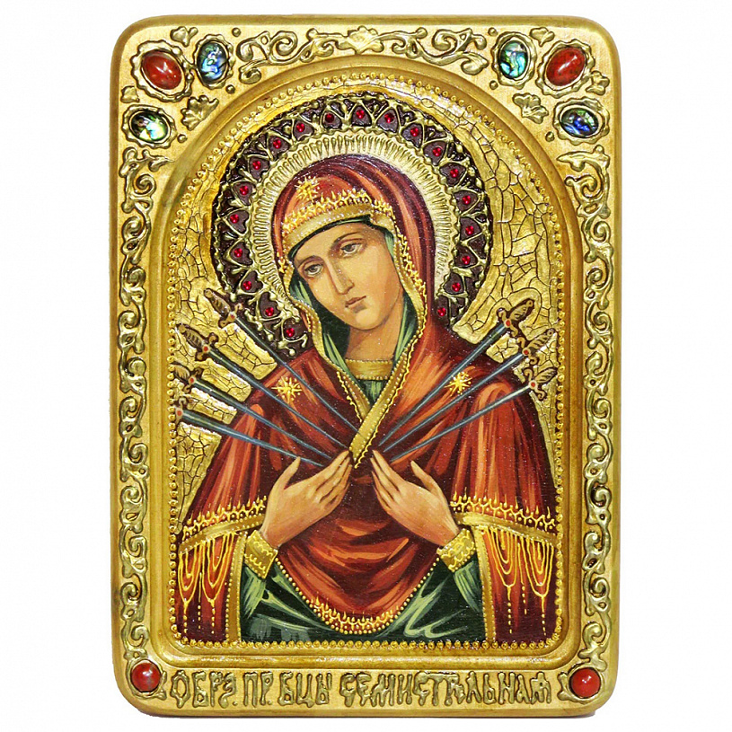 Живописная икона на кипарисе "Образ Божией Матери Семистрельная"