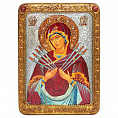 Тело иконы сделано из массива сакрального кипариса с выборкой двойного ковчега. Поля иконы и венцы оформлены русским орнаментом и украшены натуральными полудрагоценными камнями. Образ писан вручную темперными красками. Письмо соблюдено православными канонами школы Русской живородной иконописи конца 18 - начала 20 веков. Окончательно икона оформлена специальными грунтами и лаками. Все работы по оформлению делались вручную.