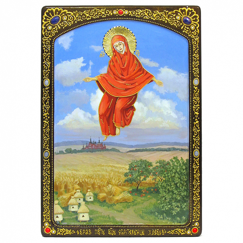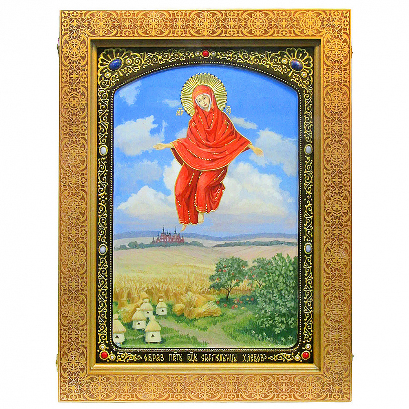 Живописная икона Образ Божией Матери "Спорительница хлебов" на кипарисе в березовом киоте