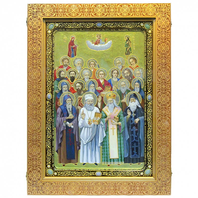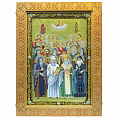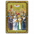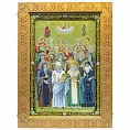 Живописная икона "Собор Святых Целителей" на кипарисе в березовом киоте