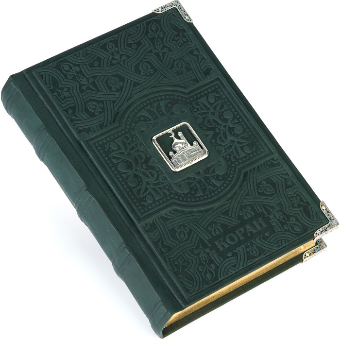 Серебряные орнаменты, украшенные традиционными исламскими мотивами, подчёркивают вечную мудрость Корана. Виньетки в форме полумесяцев, арабской вязи и геометрических композиций переплетаются, напоминая о бесконечности Аллаха и совершенстве Его творения. Драгоценный металл, мерцающий холодным светом, олицетворяет чистоту, благородство и связь земного с небесным.