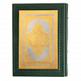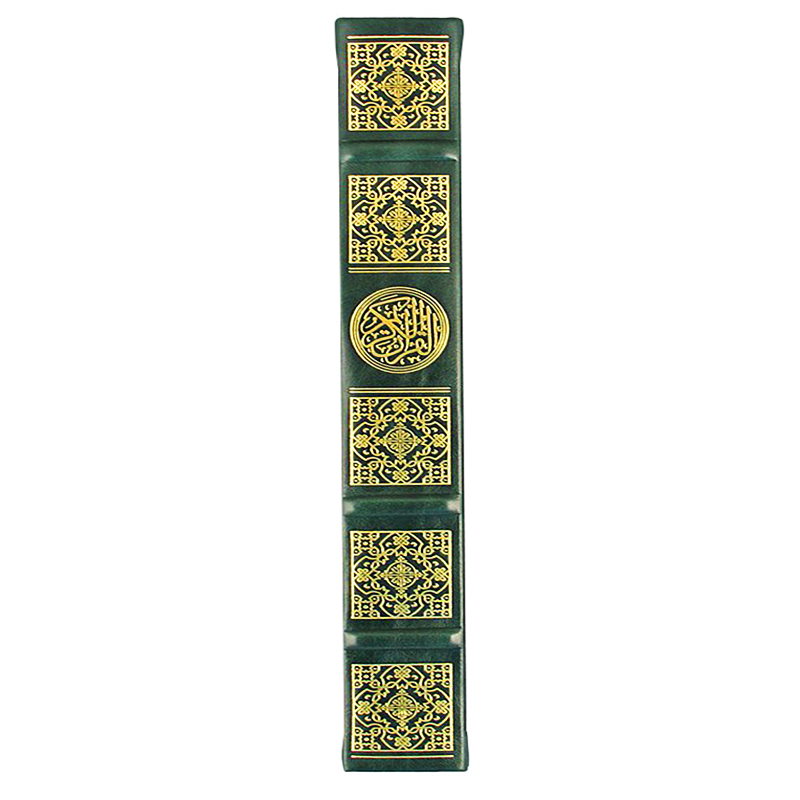 Издание выполнено в классическом стиле с использованием премиальных материалов. Переплет из натуральной кожи украшен накладкой в стиле мастеров Златоуста которая покрыта никелем и золотом, а также выполнена гравировка традиционными исламскими орнаментами, подчеркивающими сакральность содержимого. Текст напечатан на плотной мелованной бумаге, обеспечивающей четкость шрифта и долговечность страниц. Шелковое ляссе (закладка) и золотой обрез придают изданию завершенность и благородство.