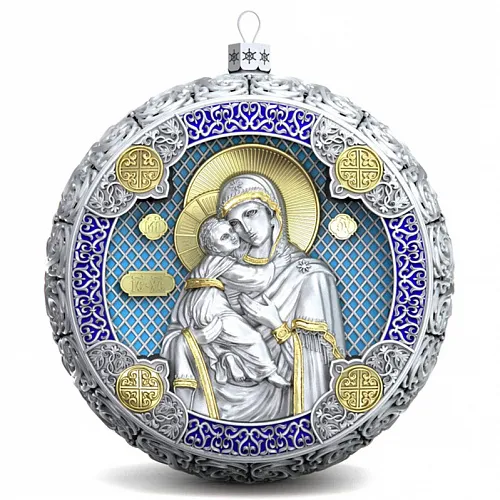 Серебряный елочный шар "Владимирская Богородица" с эмалью