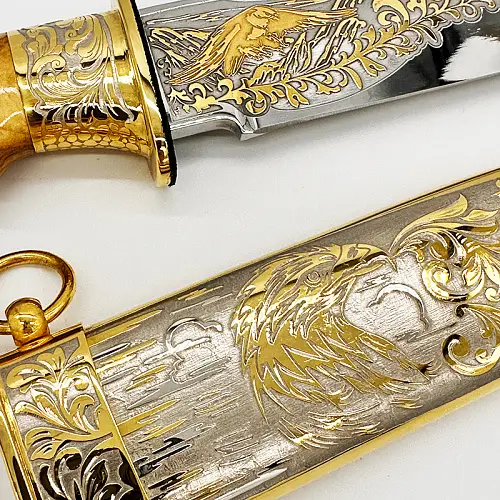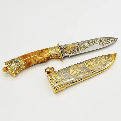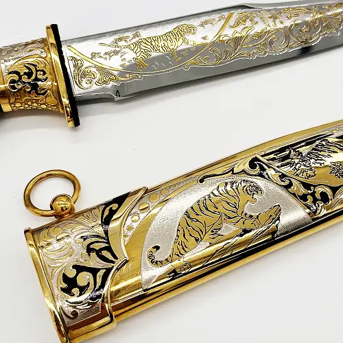 Сувенирные мечи, ножи, сабли и другие подобные предметы поразят вас своей изысканной отделкой и качеством исполнения. Каждый экземпляр является уникальным произведением искусства. Мастера используют натуральную кожу, серебро, золото, драгоценные и полудрагоценные камни, чтобы создать удивительные декоративные элементы, как на рукояти, так и на ножнах.