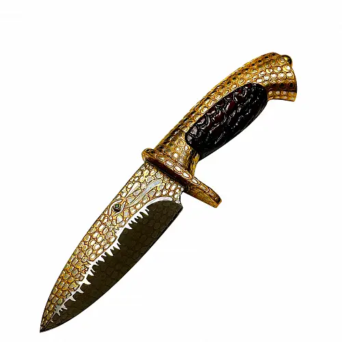 Сувенирные мечи, ножи, сабли и другие подобные предметы поразят вас своей изысканной отделкой и качеством исполнения. Каждый экземпляр является уникальным произведением искусства. Мастера используют натуральную кожу, серебро, золото, драгоценные и полудрагоценные камни, чтобы создать удивительные декоративные элементы, как на рукояти, так и на ножнах.