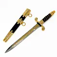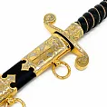 Роскошное коллекционное оружие станет прекрасным презентом на юбилей мужу, лучшему другу, руководителю или брату. Потрясающий кортик пограничника сочетает в себе лезвие с острой стали с гравировкой и прекрасной черной рукоятью, украшенной позолоченным орнаментом. Мастера по изготовлению сувенирного оружия используют материалы премиального качества и старинные технологии обработки металла, чтобы изделие как можно дольше сохраняло потрясающий внешний вид и не утратило свой блеск спустя десятки лет. Оружейные мастера уделяют пристальное внимание к деталям, чтобы создать идеальные золотые акценты, превосходные переплетения орнамента и в то же время обеспечить легкость держания кортика в руке. Дополнением прекрасного оружия являются черные ножны, украшенные ювелирной позолотой и двумя ровными кольцами для аккуратного снятия чехла с лезвия.