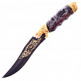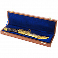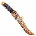 Ручная работа дополнена фигурой волка из золота. Последний символизирует свободу и преданность одновременно. Деревянная ручка не скользит в руках, покрыта лаком. Со временем она не станет жертвой различных микроорганизмов и рассыхания.