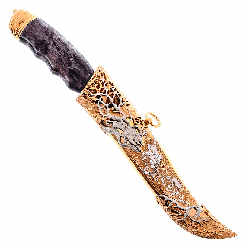 Сувенирный нож можно подарить в изысканном деревянном футляре. Также имеется чехол из металла с фигурами бегущих волков. Истинные коллекционеры высоко оценят стальное изобретение. Ножом можно пользоваться в туристических походах.