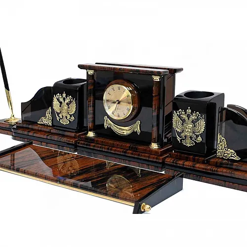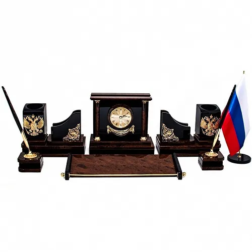 Письменный набор для руководителя из обсидиана "Герб РФ"