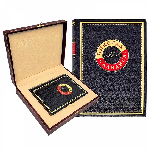 Книга в кожаном переплете "Никогда не сдавайся!"