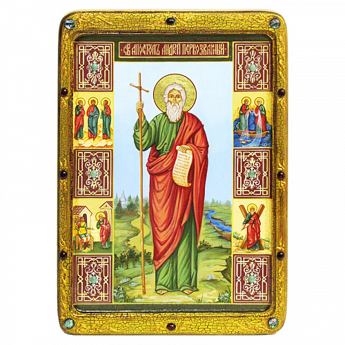 Живописная икона "Святой апостол Андрей Первозванный на кипарисе"