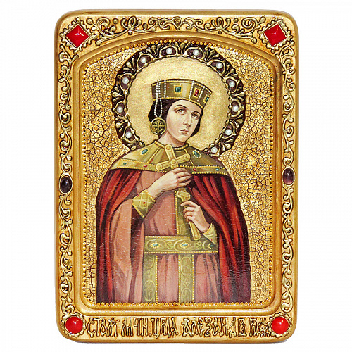 Живописная икона Святая благоверная княгиня Елена Сербская на кипарисе