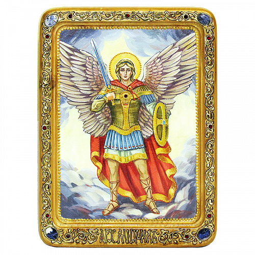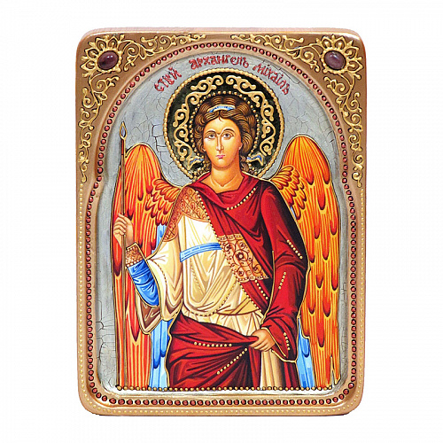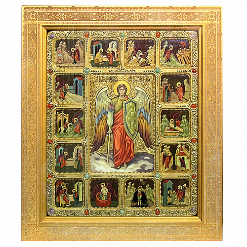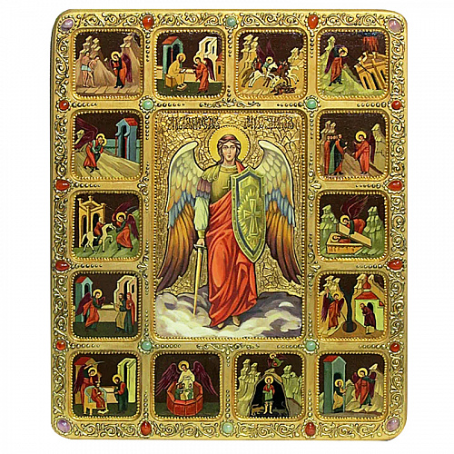 Живописная икона Архангел Михаил с житийными сценами на кипарисовой доске