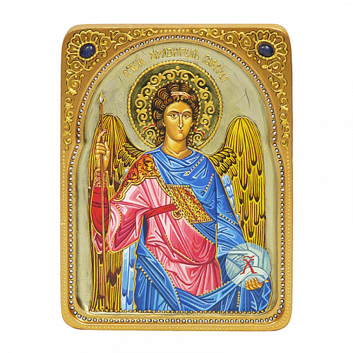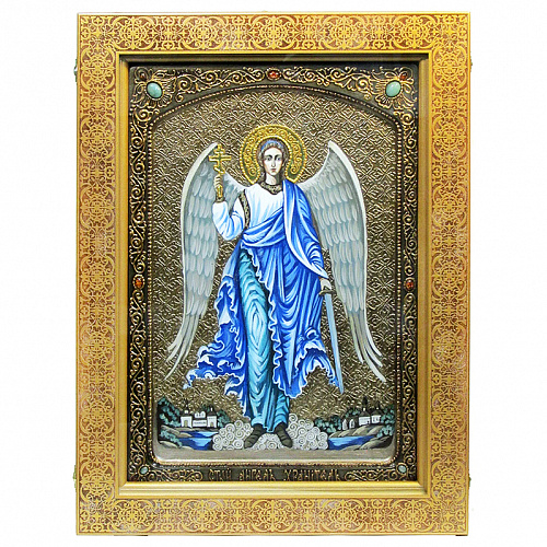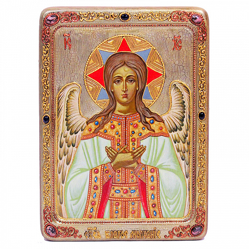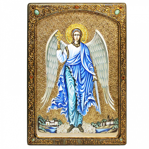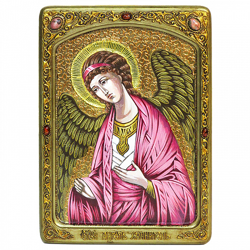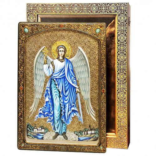Живописная икона Ангела Хранителя на кипарисе в березовом киоте