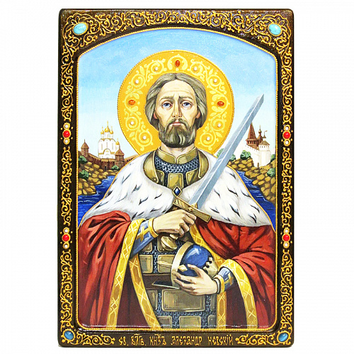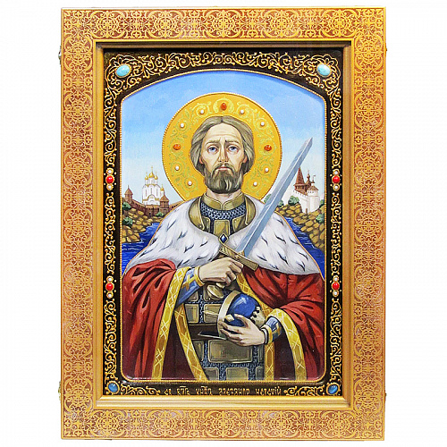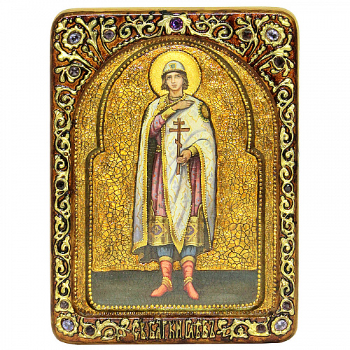Живописная икона Святой благоверный князь Александр Невский на кипарисе