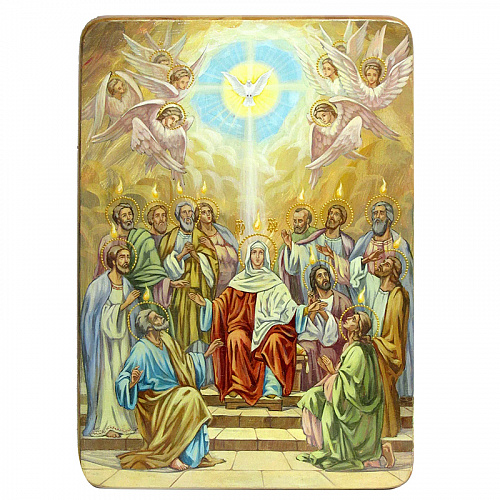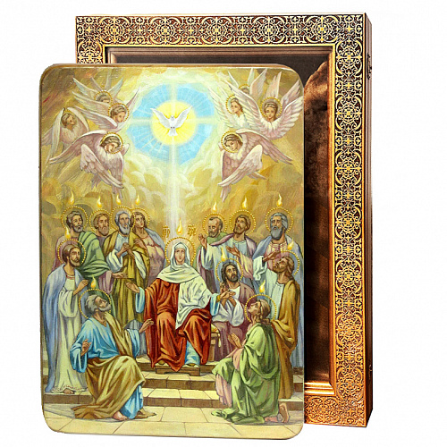 Живописная икона Сошествие Святого Духа на кипарисе в березовом киоте