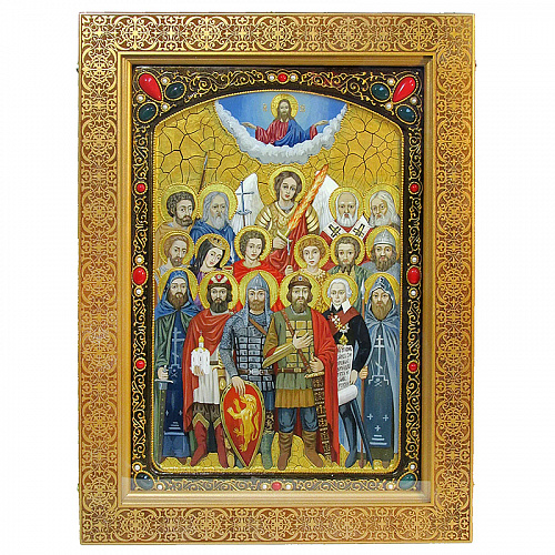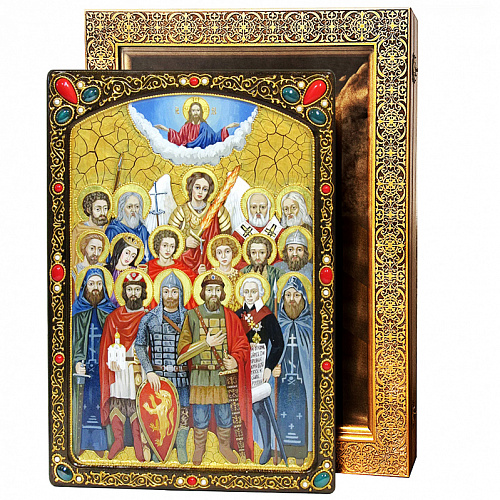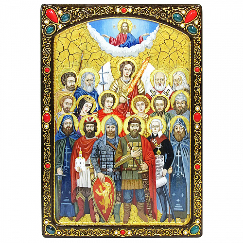 Живописная икона Собор Святых покровителей воинства российского на кипарисе
