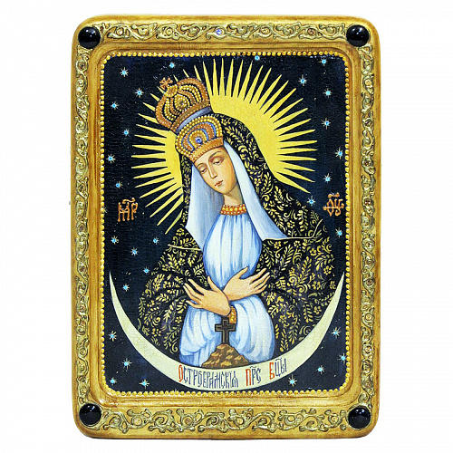 Живописная икона Образ Пресвятой Богородицы Остробрамская (Виленская) на кипарисе