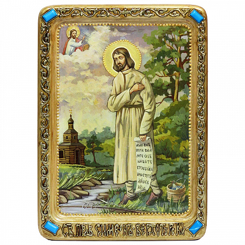 Живописная икона Святой праведный Симеон Верхотурский на кипарисе