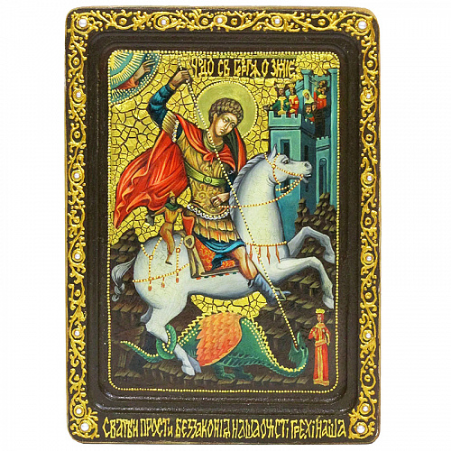 Живописная икона Чудо Святого Георгия о змие на чёрном дубе