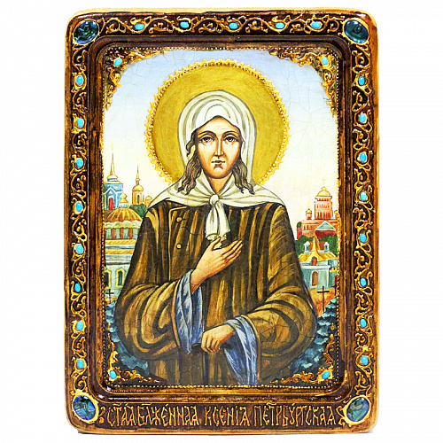 Живописная икона Святая Блаженная Ксения Петербургская на кипарисе