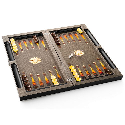 Нарды из карельской березы и янтаря "Солнце Арабии"